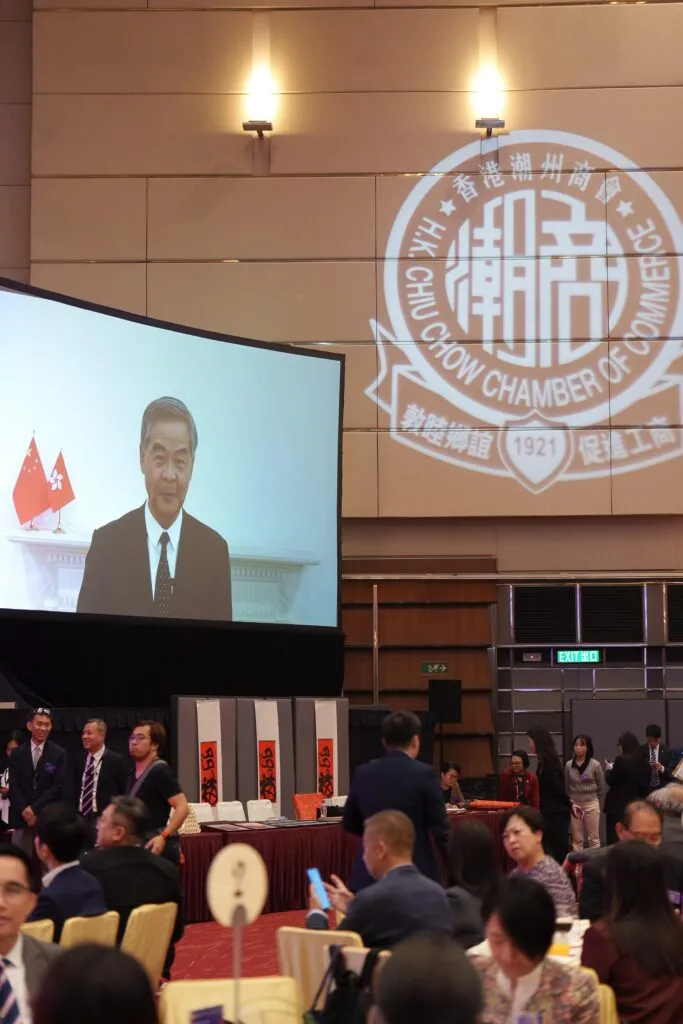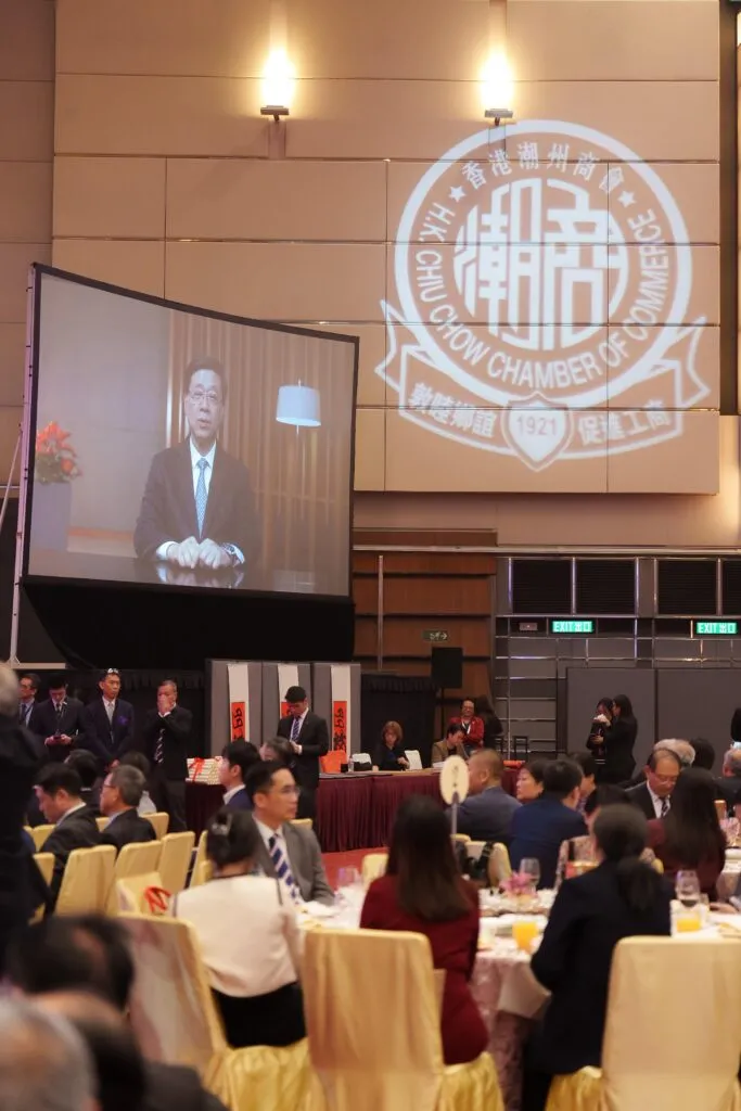 香港潮州商會第54屆會董就職典禮12月2日晚在香港會議展覽中心隆重舉行,高佩璇成為該商會103年來的首任女會長,為商會發展開啟新篇章。行政長官李家超、全國政協副主席梁振英通過視頻致辭,肯定潮商在香港經濟及國家建設中的重要貢獻,並期許商會繼續發揮「超級聯繫人」作用,推動「一帶一路」和粵港澳大灣區建設。
