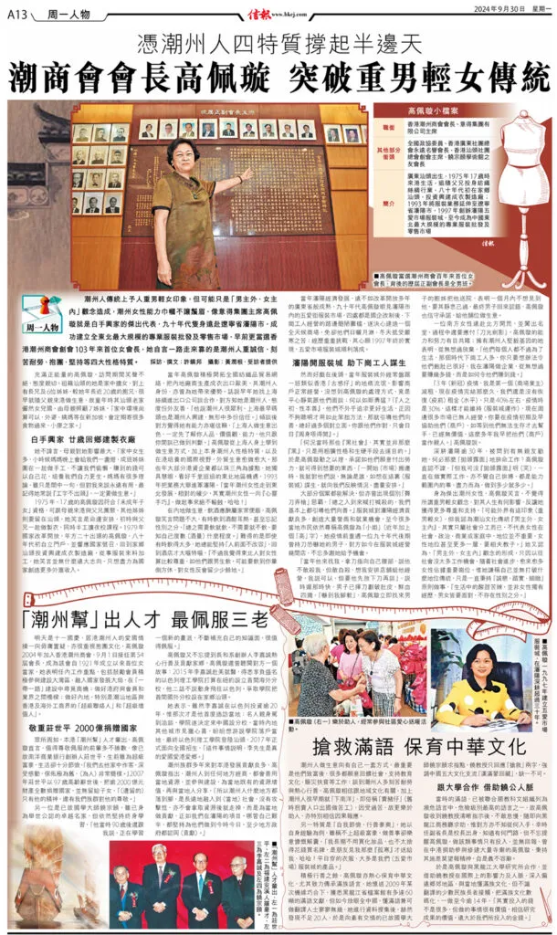 《信報》專訪:潮商會會長高佩璇 突破重男輕女傳統