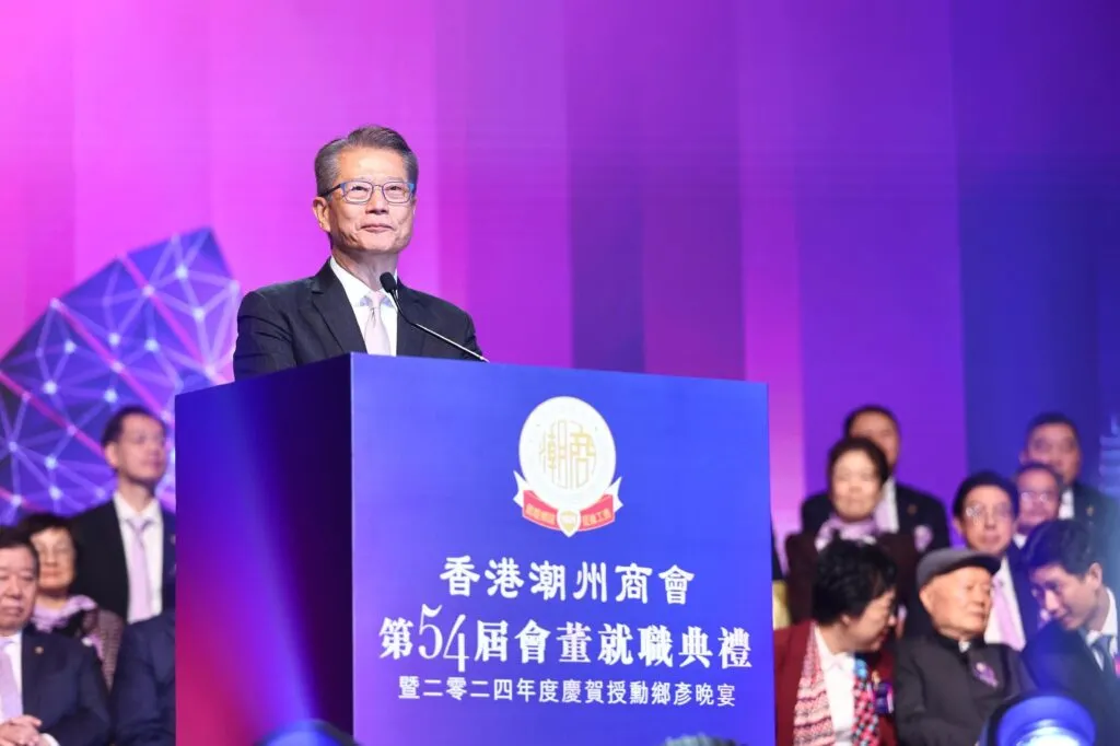 香港潮州商會第54屆會董就職典禮12月2日晚在香港會議展覽中心隆重舉行,高佩璇成為該商會103年來的首任女會長,為商會發展開啟新篇章。行政長官李家超、全國政協副主席梁振英通過視頻致辭,肯定潮商在香港經濟及國家建設中的重要貢獻,並期許商會繼續發揮「超級聯繫人」作用,推動「一帶一路」和粵港澳大灣區建設。