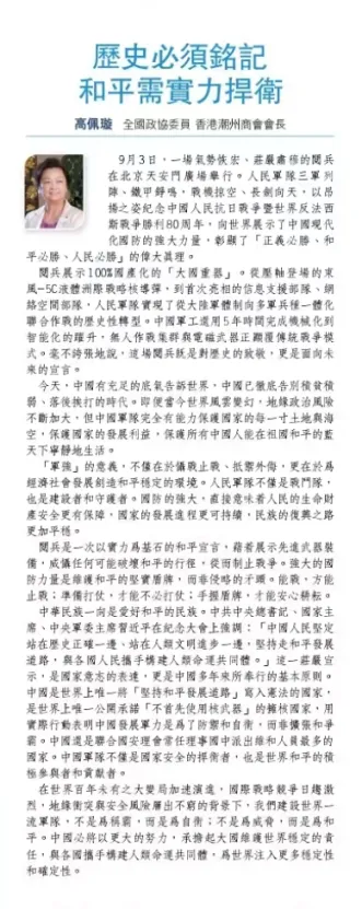 《文匯報》——歷史必須銘記 和平需實力捍衛
