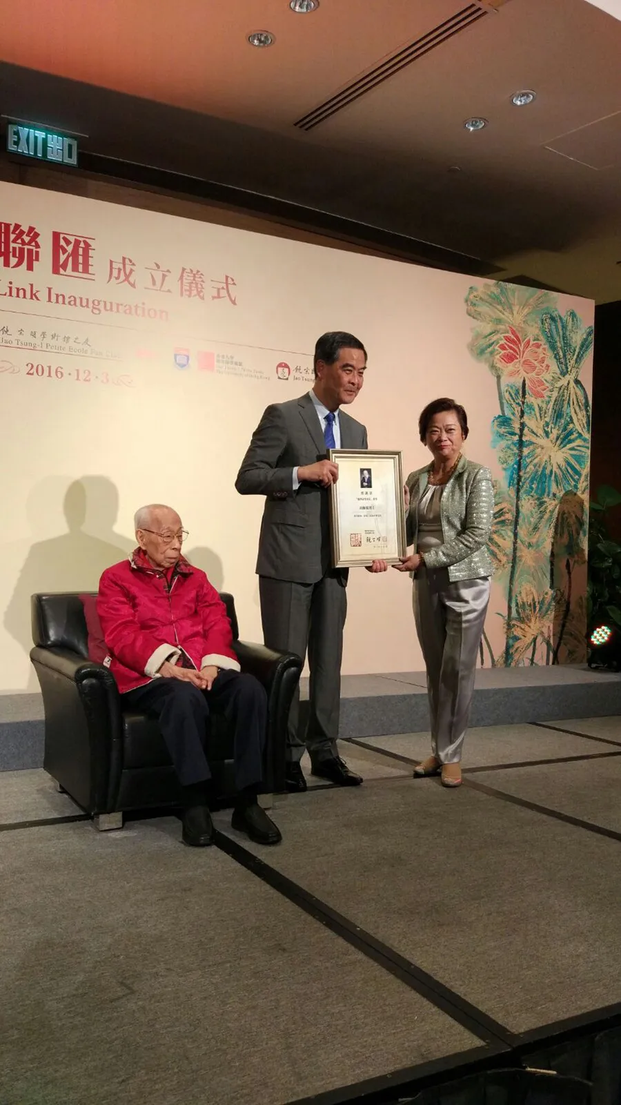 饒學聯滙成立儀式暨晚宴上,特首梁振英向高主席颁感谢状