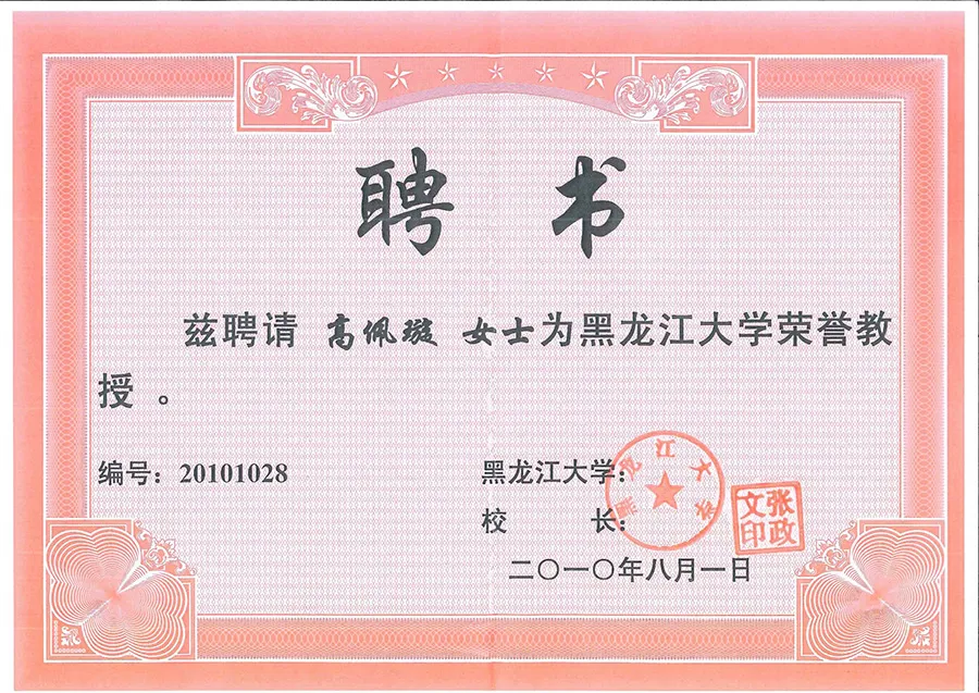 黑龍江大學聘請高佩璇博士為榮譽教授